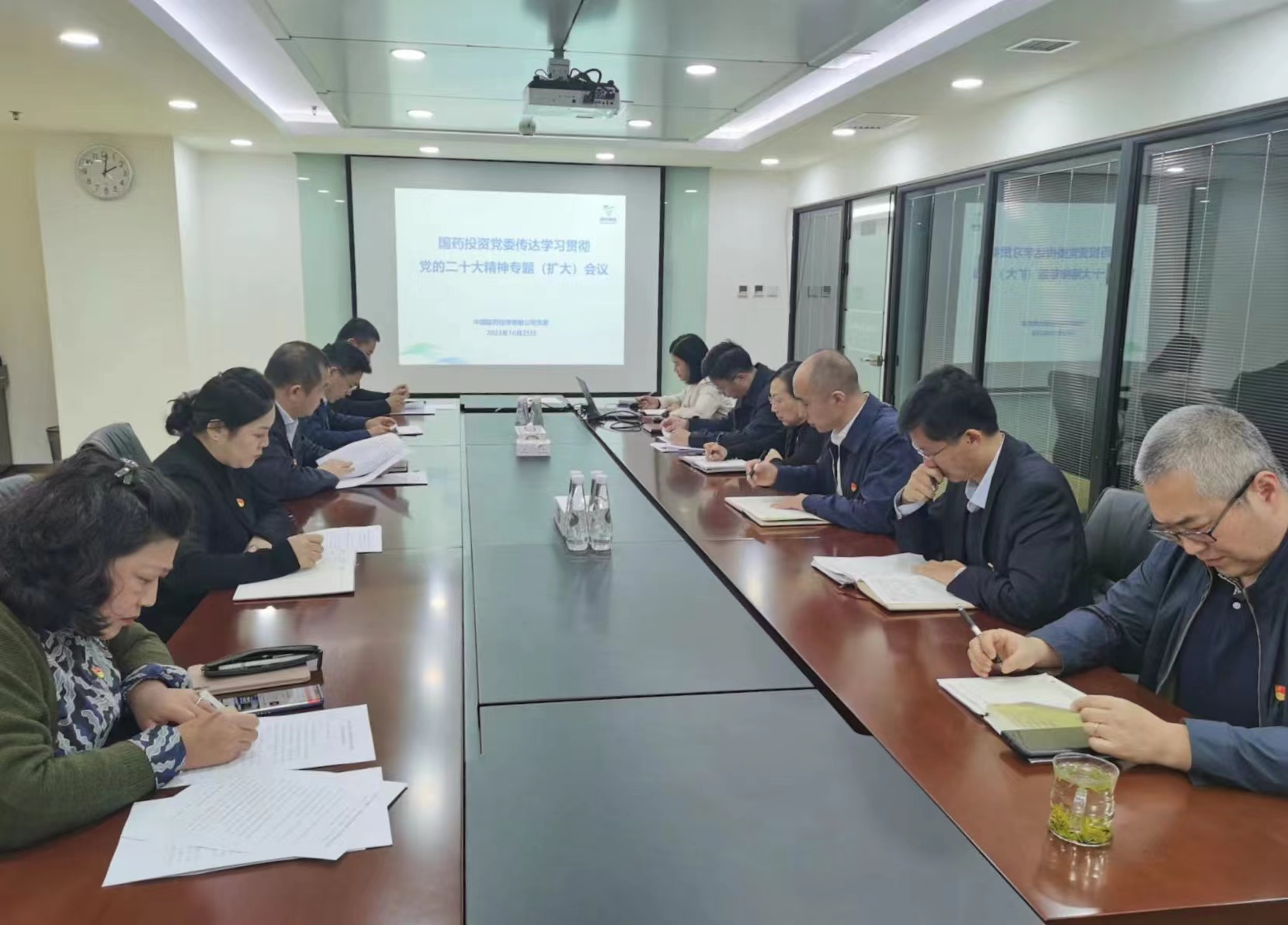 10 月 25 日,国药投资党委书记、总经理梁红军主持召开公司党委(扩大)会,专题传达学习党的二十大精神,认真学习贯彻国药集团党委(扩大)会部署要求,对公司学习宣传贯彻党的二十大精神进行动员部署。公司领导班子成员,党支部书记、各部门负责人、团委书记参加会议。